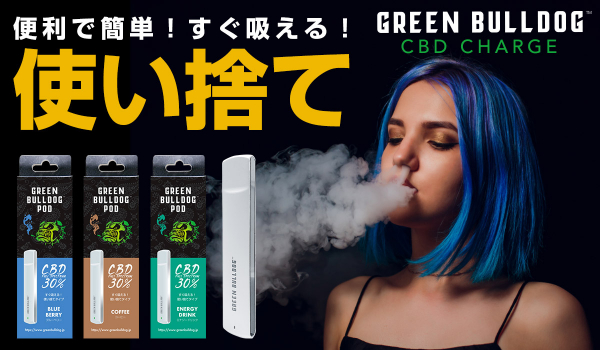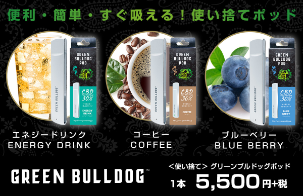 CBDブランド【GREEN BULLDOG】から多くのユーザーの声に応じてフルスペクトラム30%・フレーバー全3種類の使い捨てポッドタイプの発売を開始いたします。