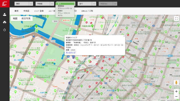 1)地図上で知りたい情報が、一目で分かる「商業施設情報 × 統計情報」