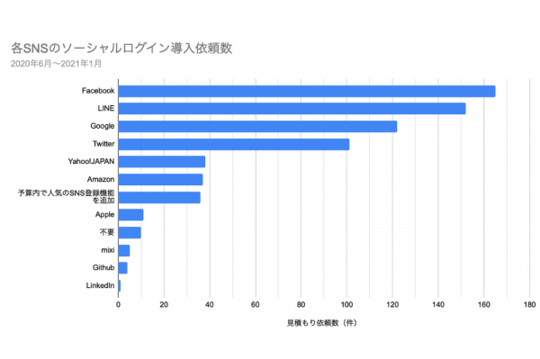 ソーシャルログイン機能の人気SNSについての調査報告はこちら。