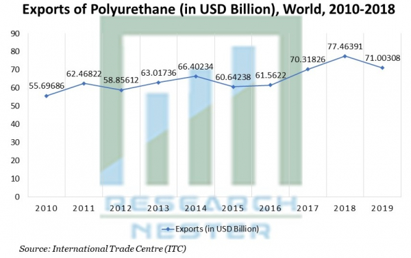 国際貿易センター(ITC)の貿易統計によると、ポリウレタンの輸出は2010年の557.0億米ドルから、2018年には774.60憶万米ドルに増加しました。
