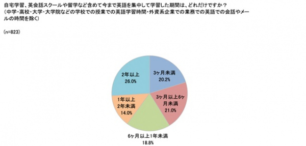 ■集中して英語を学習した期間は、6ヶ月以上が約6割。2年以上が最も多く26%を占める。
