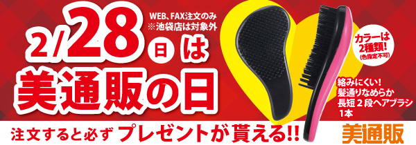 2月28日(日)は「美通販の日」!プロ向け美容材料の通信販売サイト「美通販」が、当日お買い物された方全員に「絡みにくい! 髪通りなめらか長短2段ヘアブラシ」をプレゼント