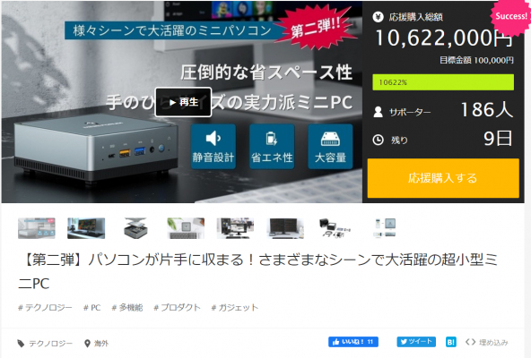 BESSTAR TECH LIMITEDはMakuake(マクアケ)にて開始したミニパソコンUM270の予約販売で、2021年2月18日、目標金額の10000%にあたる1000万円の支援を獲得しました。