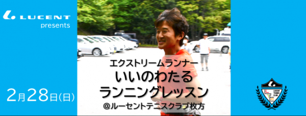 世界的エクストリームランナー・いいのわたるに学ぶ! 2/28 ルーセントテニスクラブでランニングイベントを開催