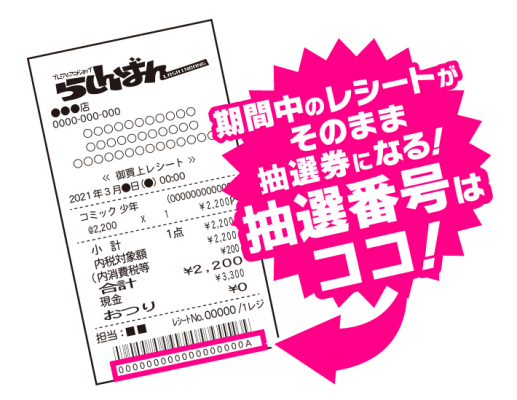 お買い物時のレシートが抽選券代わりになりますので、当選発表まで大切に保管してください。