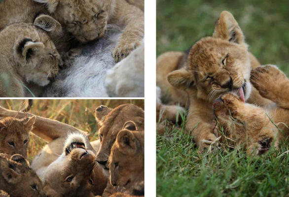 私たちだってかわいい──抜群の美しさと希少性を併せ持つサーバル、イエネコの祖といわれるアフリカンワイルドキャット、長く伸びた耳毛が特徴のカラカル、母の背中の上で眠る子どものチーター、子どもたちにお乳を与える母ライオン、木の上でのんびりくつろぐヒョウ。