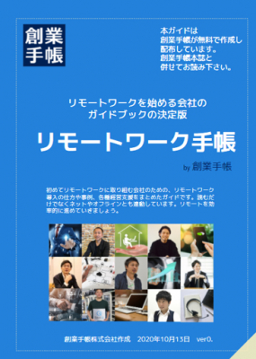 「リモートワーク手帳」日本初!リモートワーク専門の無料ガイドブックをリリース コロナで加速化するリモートワークを自社で導入するための課題解決ガイド 創業手帳(株)