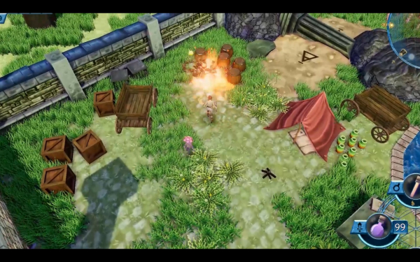 また“火”のポーションは、木材で作られた障害物を焼き払ったり、爆発物を起爆させることにも利用できる。木のツルのような、火が付けられそうなオブジェクトにはとても効果的で、火鉢や石灯籠等に投げて、周囲を明るくしてパズルを解くことも可能だ。