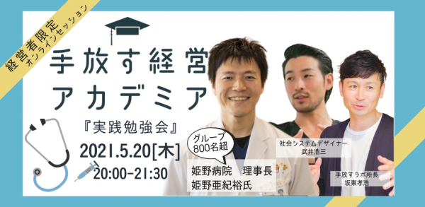 手放す経営ラボラトリー(運営会社(株)ブレスカンパニー)は、進化型組織に変容したい経営者向けの実践的な勉強会を令和3年5月20日20時から無料でオンライン開催します。
