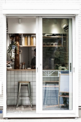 代々木公園の西に位置する代々木上原は、閑静な住宅街であり周辺に学校が多いエリアです。当店は、近隣の住民や学生たちが気軽にふらっと立ち寄りしやすい店づくりを目指し、店内は白を基調にシンプルでスタイリッシュな内装となっています。