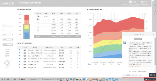 「MotionBoard」は情報システム部門やSEといったシステム構築に精通した方だけでなく、営業や経理などさまざまな部門の方々にご利用いただいており、各業務内容に合わせた、柔軟なサポートが求められていました。当社では、サポート提供形態としてWebフォームからのお問い合わせをメインにしておりましたが、「ユーザーが問い合わせを行う敷居が高い」「リアルタイム性・インタラクティブ性の高い対応にしてほしい」という声をいただいておりました。