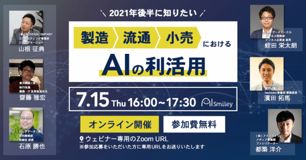 AIポータルメディア「AIsmiley」、2021年後半に知りたい 製造・流通・小売におけるAIの利活用ウェビナーを開催!2021年7月15日(木)16時〜