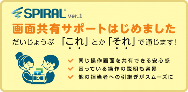 株式会社パイプドビッツ(東京都港区、代表取締役社長CEO 林哲也、以下「当社」)は、サポート担当者が「SPIRAL(R) ver.1」をご利用のお客様のパソコン画面を確認しながら操作方法を案内する「画面共有サポート」を本日2021年7月14日より提供開始します。音声だけの電話サポートと違い、お客様と同じ操作画面を確認しながらサポート対応することで、お客様の不安を解消し、より安心感のあるサポート体験を提供します。