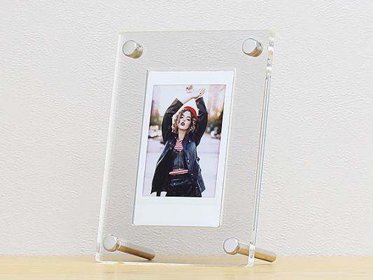 チェキフィルムを全面アクリル板で挟み込むタイプのフレーム。大切な思い出が詰まったチェキフィルムをしっかりと守ります。