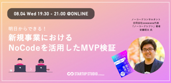 プログラミングを使わないIT開発の支援などを手がけている合同会社NoCodeCamp(本社:東京都稲城市、代表:宮崎 翼)は2021年8月4日(水)、Creww株式会社(本社:東京都渋谷区、代表取締役:伊地知 天)が主催する、顧客に価値を提供できる必要最低限のプロダクトをNoCodeで検証する方法について解説するオンラインイベント「明日から出来る!新規事業における、NoCodeを活用したMVP検証」にて、合同会社NoCodeCampの安藤昭太が特別講師として登壇します。