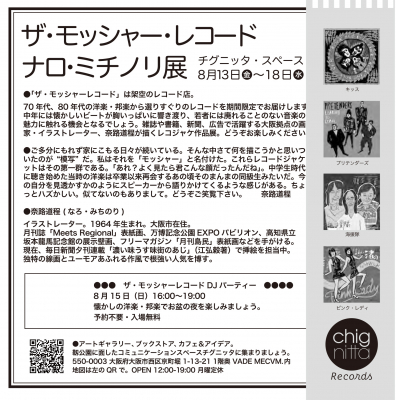 chignitta space(運営:株式会社チグニッタ)では2021年8月13日(金)より大阪在住の人気イラストレーター奈路道程(なろみちのり)さんの個展「ザ・モッシャーレコード」を開催します。