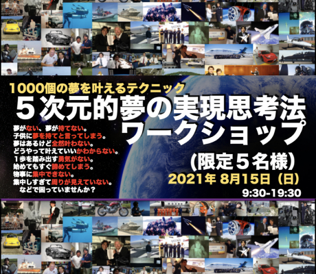 人々の夢を宇宙で実現させる民間宇宙サービスプラットフォームを提供する宇宙ベンチャー企業株式会社ASTRAX(アストラックス、以下 ASTRAX、本社:神奈川県鎌倉市、代表取締役・民間宇宙飛行士:山崎大地)では、ユニバーサル人材教育事業とスーパーニュータイプ育成事業の一貫として、5次元的夢の実現思考法ワークショップという講座を不定期に開催しており、2021年8月15日(日)と同年9月19日(日)、どちらも9:30-19:30に鎌倉で実施いたしますのでお知らせいたします。