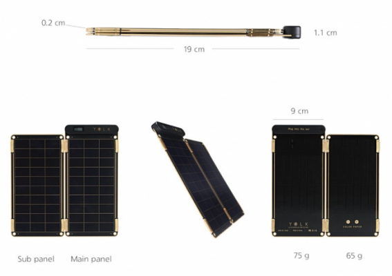 YOLK Solar Paper(ヨーク ソーラーペーパー)は、世界最薄のソーラー充電器。太陽の下で展開して、USBケーブルをつなげるだけで簡単に充電が開始されます。