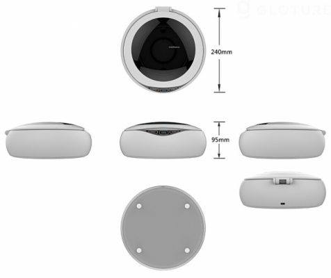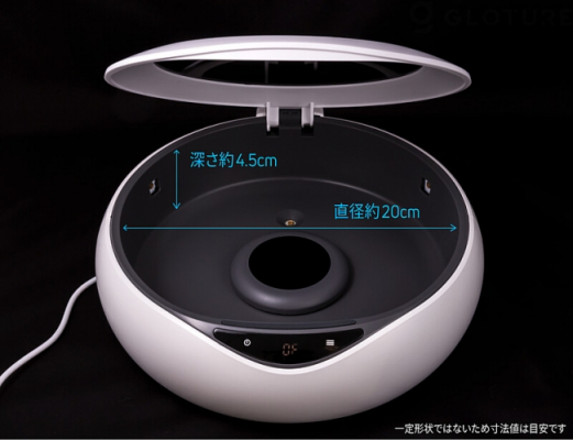 「GYBB UVC除菌充電器」は直径約20cm、深さ約4.5cmと大容量。大型のスマートフォンや大人用マスクも丸ごと除菌できます。