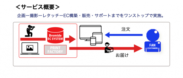 エンタテインメント業界でアーティストの写真撮影を専門に行う、株式会社Bromide(本社:東京都世田谷区 代表取締役 相澤 一茂)は、アーティスト専門の写真プリント販売システム(以下、本システム)を開発し、8月24日よりサービスを開始する。(https://www.bromide.jp)