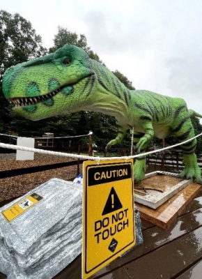 『デュラクスアウトドアリゾート』の象徴ともいえる恐竜 グリーンT-REXが宿泊者をお出迎え!