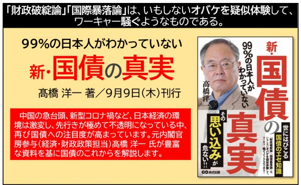 「財政破綻論」「国際暴落論」は、いもしないオバケを疑似体験して、ワーキャー騒ぐようなものである。?橋 洋一最新刊『99%の日本人がわかっていない新・国債の真実』を2021年9月9日(木)刊行