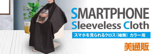 「美通販」では、施術中もお客様に快適時間を提供できる「スマホを見られるクロス(袖無) カラー用」を、業界最安値を目指した美通販会員価格でご提供いたします。この機会に、多くのサロン様のお役に立てていただききたい次第です。