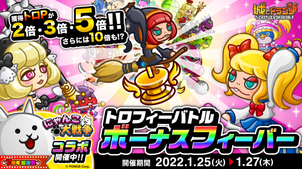 株式会社アソビズム(本社:東京都千代田区、代表取締役:大手智之)は、App Store・Google Playにて好評配信中の『城とドラゴン』で、「トロフィーバトル ボーナスフィーバー」を2022年1月25日(火)より開催いたします。