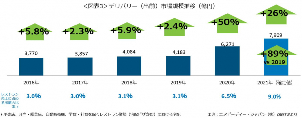 2021年出前市場規模は6264億円で50%増