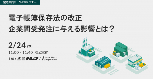 【オンライン&参加費無料】「【製造業向けセミナー】電子帳簿保存法の改正。企業間受発注に与える影響とは?」2月24日に開催!