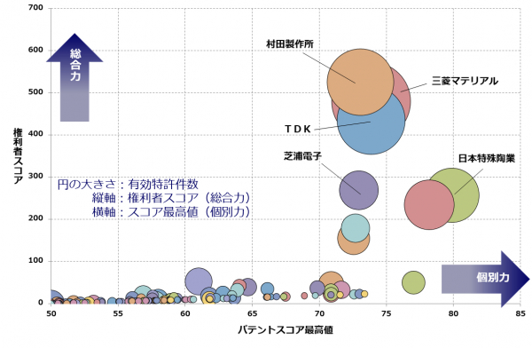 【サーミスタ】特許総合力トップ3は村田製作所、三菱マテリアル、TDK
