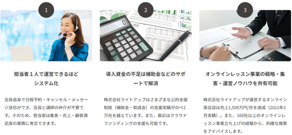 実際に弊社が自社で運営しているオンライン英会話サービスを例に、ホームページの立ち上げ、講師の採用、会員集客などの具体的な方法や運営のノウハウなどをご紹介させていただいております。