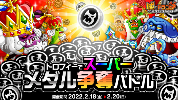 株式会社アソビズム(本社:東京都千代田区、代表取締役:大手智之)は、App Store・Google Playにて好評配信中の『城とドラゴン』で「トロフィーでスーパーメダル争奪バトル」を2022年2月18日(金)より開催いたします。