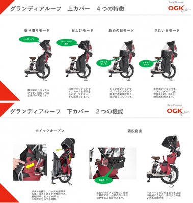 自転車用チャイルドシート国内シェアトップのオージーケー技研株式会社(本社:大阪府東大阪市、代表取締役:木村 泰治)は、自転車用チャイルドシートの最上位ブランド「グランディア」専用のリヤシート用レインカバー「グランディアルーフ(RCR-010)」を、3月12日よりオンラインストア(https://ogk-giken.shop-pro.jp)及び自転車販売店などで順次販売を開始します。上カバーは天気や気分に合わせて4つのモードを選べる“アレンジルーフ”を採用し、ファスナーなしで開閉できる下カバーで子どもの乗せ降ろしもラクにします(特許出願中)。パパママから寄せられたニーズに応え、憂鬱に感じる雨の日や慌ただしい毎日の自転車移動をサポートします。