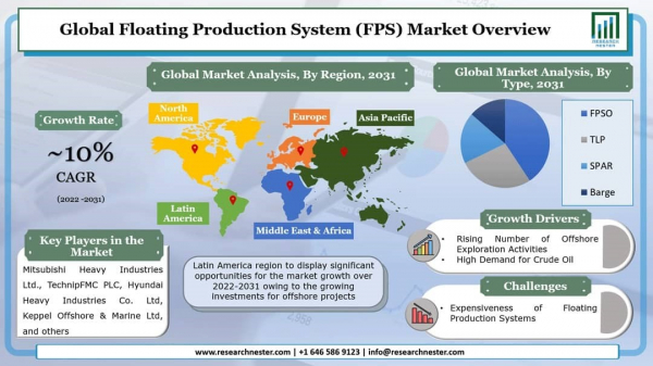 ● 世界の浮体式生産システム(FPS)市場は、(2022-2031年)の予測期間中に約10%のCAGRで成長することにより、大量の収益を獲得すると推定されています。