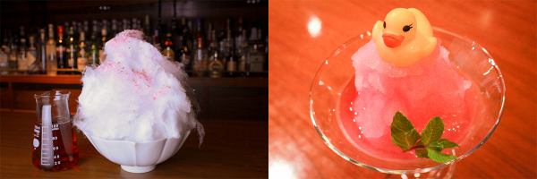 桜リキュールとジンを使ったフローズンカクテルの満開桜のアヒル。(写真右)