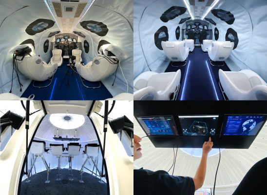 今回新しく制作するPR動画は、ASTRAXが所有する民間宇宙船教育訓練シミュレーターのうち、ヴァージン・ギャラクティック社の「ユニティ」を模擬したシミュレーターと、スペースX 社の「クルードラゴン」を模擬したシミュレーターを使用して、スペースフライトアテンダント(宇宙CA)についてのPR動画を2本制作することになりました。