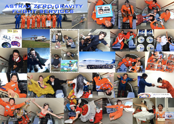 そしてお客様が無重力状態でフワフワと浮いて楽しむ体験をするだけではなく、参加者それぞれが考え、希望しているさまざまな実験や目的(例えば、ほうきに乗って魔法使いのように飛び回りたい、無重力の状態でウェディングを行いたい、無重力飛行中にプロポーズを行いたい、無重力を利用したCMやPVの撮影をしたい、無重力で番組や特殊映像の撮影がしたい、研究や実験に利用したい、教育や社会問題解決に利用したいなど)を実現させるために、ASTRAXではあらゆる技術やサービスの研究と開発をおこなってまいりました。