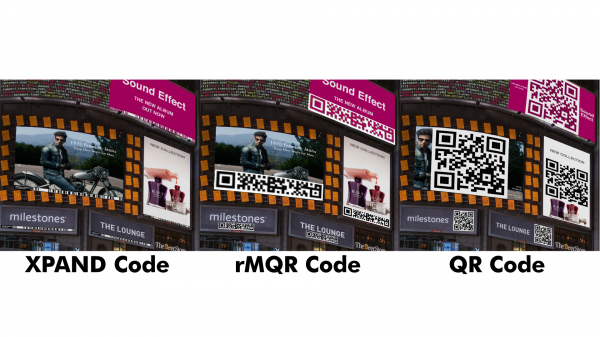 XPANDコード / rMQRコード(横長QRコード) / QRコードを景観に適用した場合の比較