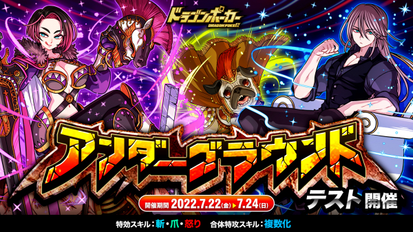 株式会社アソビズム(本社:東京都千代田区、代表取締役:大手智之)は、App Store・Google Playにて好評配信中のリアルタイム合体カードバトル『ドラゴンポーカー』で、2022年7月22日(金)より「アンダーグラウンド」をテスト開催いたします。