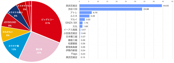カラオケのカテゴリーを見てみると、ビッグエコーの利用客が最も多く、僅差で歌広場が続き、次にカラオケ館、まねきねこ、JOYSOUNDとなっています。これは渋谷のセンター街や道玄坂エリアの店舗の立地状況などが反映された結果だと考えられます。*対象期間2022年2月1日(火)〜5月31日(火)