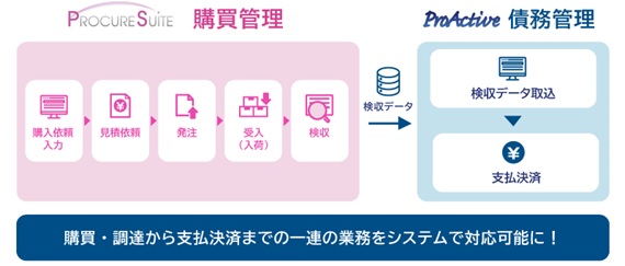 このたび、「PROCURESUITE」で管理する検収データと「ProActive」の会計システムとのシームレスな連携を実現いたします。この連携により、お客様の購買・調達から支払決済までの一連の業務におけるデジタル化・効率化に貢献します。