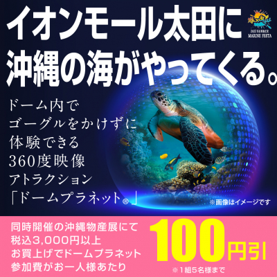 ※沖縄物産展にて税込3000円以上お買い上げでドームプラネット参加費お一人様あたり100円引き(最大5名様まで)