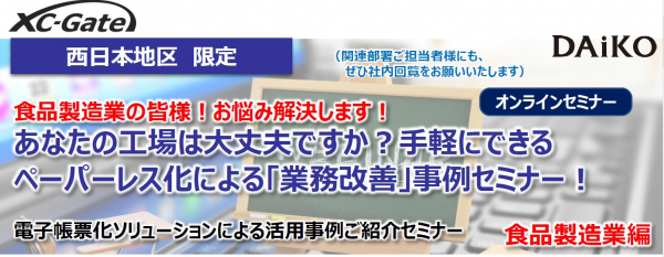【Webセミナー】食品製造業の皆様!お悩み解決します。 あなたの工場は大丈夫ですか?手軽にできるペーパーレス化による「業務改善」事例セミナー! 電子帳票化ソリューションによる活用事例ご紹介セミナー