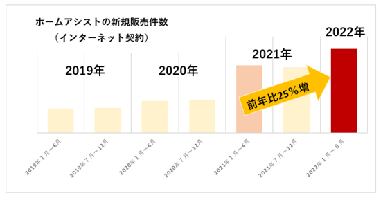 楽天損害保険株式会社(以下「楽天損保」)は、住宅向け火災保険「ホームアシスト(家庭総合保険)」(以下、「ホームアシスト」)の2022年1月から6月の期間における新規販売件数(インターネット契約)が前年同期比で25%増となりましたことをお知らせします。