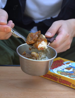 ※レトルトご飯はクッカーを使った湯煎がおすすめです。小さめのクッカーでもパウチタイプであれば問題ないですが、今回はカレーライスなので大きめのクッカーが良いです。