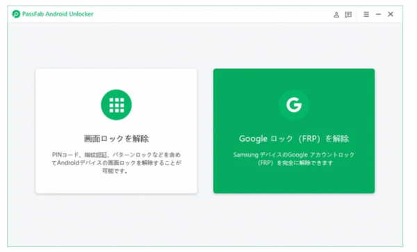 Step1:PassFab Android Unlockをパソコンにダウンロードして起動し、「Googleロック(FRP)を解除」を選択します。