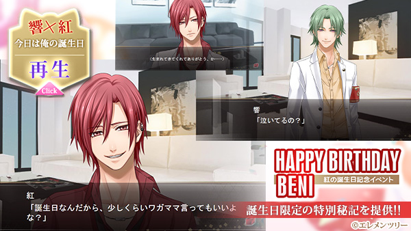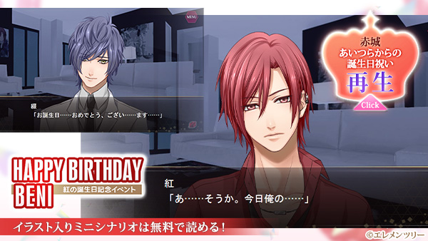 株式会社エレメンツリー(代表取締役:小川 邦弘、所在地:大阪市中央区)は、2023年2月22日にホラーBLゲーム『チギリバコ』(CV.四ツ谷サイダー、鳩マン軍曹etc)紅の誕生祭イベントの提供を開始しました。
