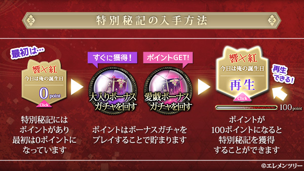 ※誕生日特別秘記は、ボーナスガチャをプレイして獲得すると読むことができます。