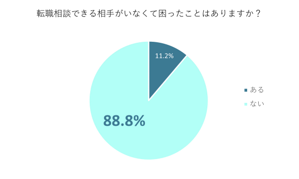 今回実施したアンケート調査では、約6割が「身近に転職の悩みを相談できる人がいる」と回答したことが明らかになりました。また相談相手がいなくて困った人の割合は11.2%と少ないものの、誰かに背中を押してほしい人が一定数存在していることもわかりました。